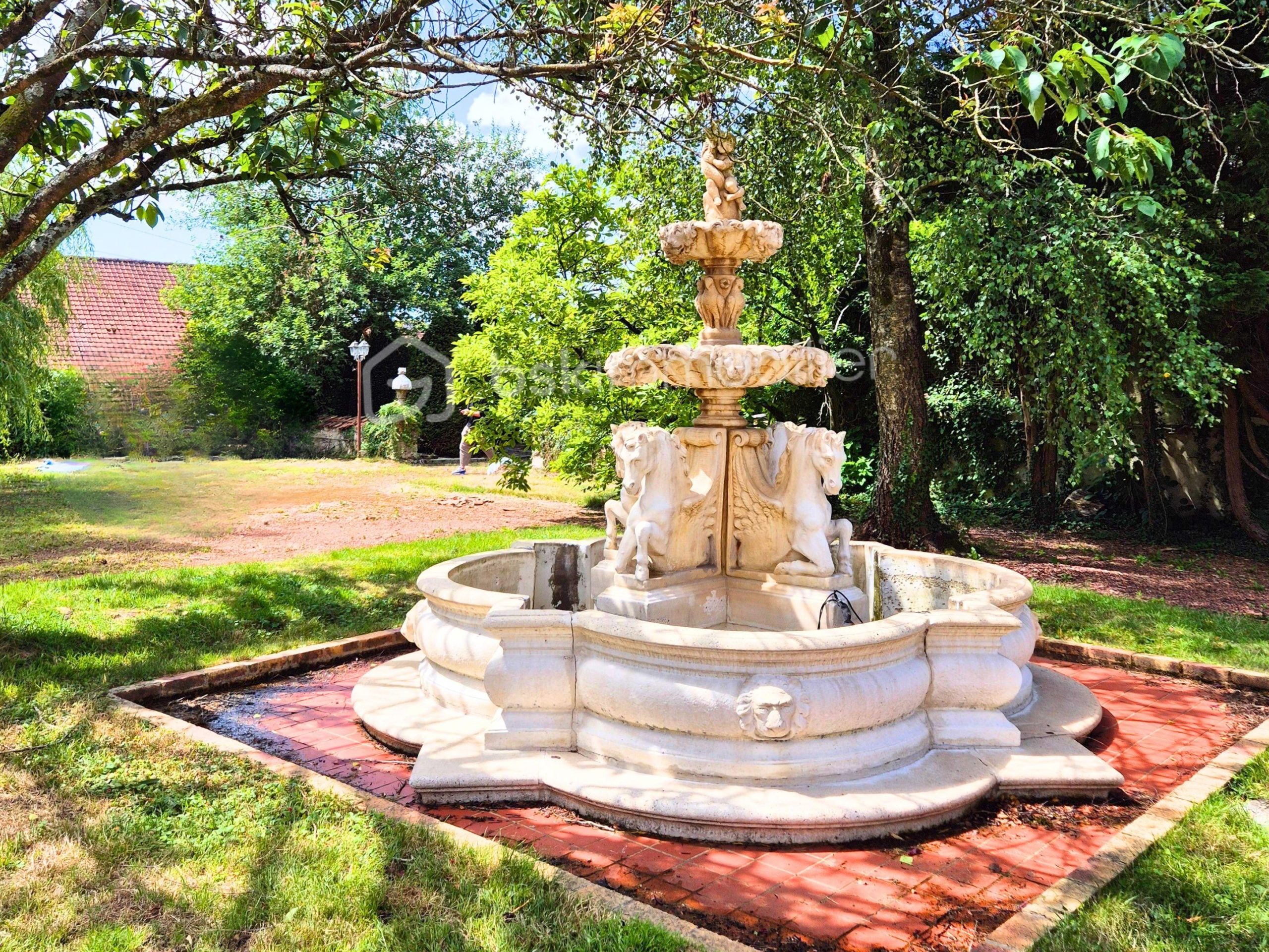 À l’extérieur, un parc clos et arboré de plus de 2 000 m² avec fontaine, puits, calvaire et dépendances (grange, boxs, double accès).